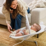 Odvojiva prečka s dvjema igračkama potiče razvoj vizualnih i motoričkih vještina djeteta. Navlaka se lako skida i pere u perilici, pa ležaljku bez napora održavate čistom. Protuklizne kapice na nožicama i čvrst okvir pružaju sigurnost na različitim površinama.