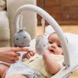 Odvojiva prečka s dvije mekane igračke potiče praćenje pogledom, koordinaciju ruka–oko i prve hvatove.