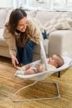 Dio opreme je odvojiva prečka s dvjema igračkama koje podupiru razvoj osjetila i koordinacije pokreta. Navlaka se može lako skinuti i oprati, pa je ležaljka uvijek higijenski čista. Zahvaljujući laganom i kompaktnom dizajnu lako je premjestite po stanu.
