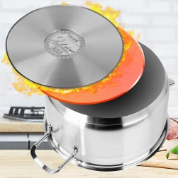 Dno izvrsno akumulira i raspoređuje toplinu po cijeloj površini, pa kuhate brže, ravnomjernije i s manjom potrošnjom energije.