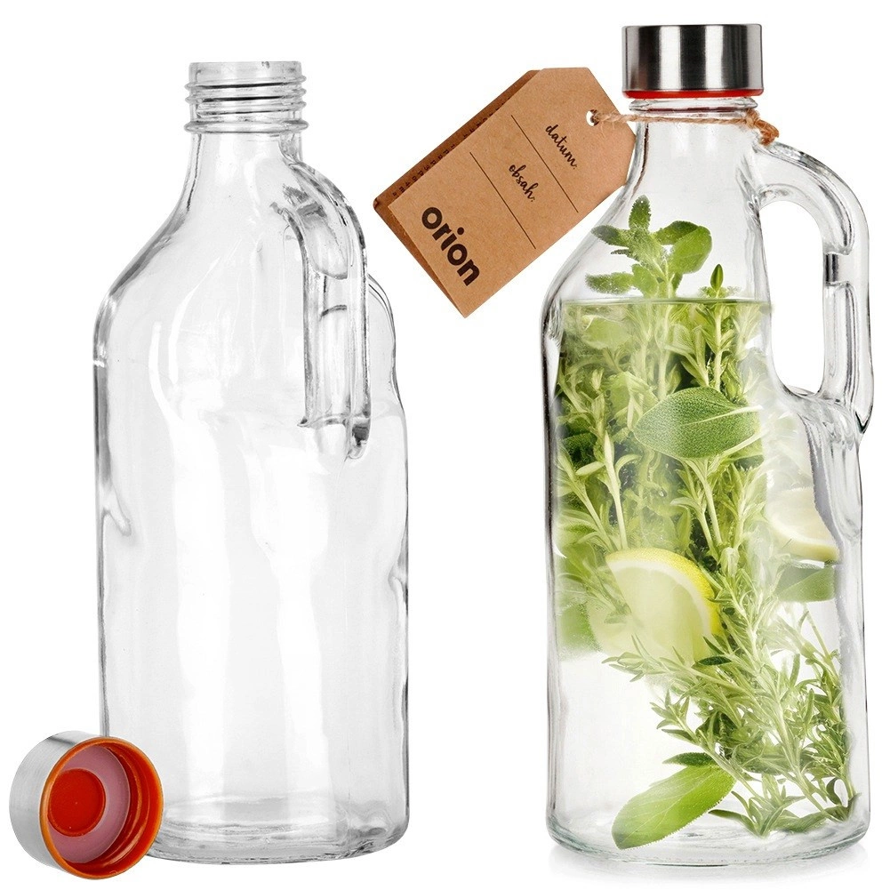 Ova staklena boca s ručkom savršen je izbor za vodu, sokove, limunade, smoothieje te domaće sirupe ili likere. Prozirno staklo omogućuje kontrolu sadržaja, a metalni poklopac sa silikonskom brtvom pouzdano sprječava curenje i dulje čuva svježinu napitaka. Zahvaljujući ručki, boca odlično leži u ruci i olakšava točenje.