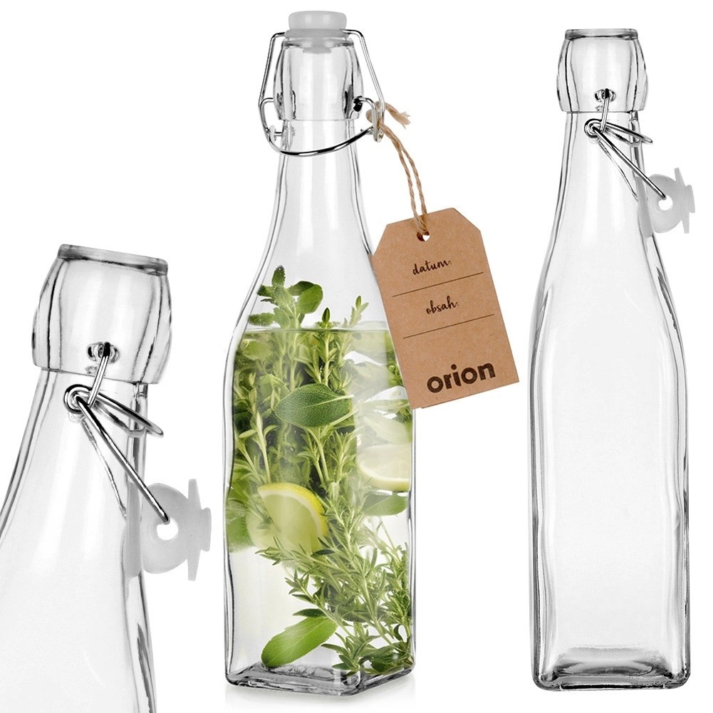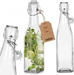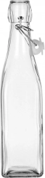 Elegantna staklena boca u retro stilu zapremnine 530 ml s čvrstim patentnim zatvaračem i debelim silikonskim brtvom. Idealna za limunade, sokove, ledene čajeve te domaće sirupe, vino, likere i ulja. Prozirno ukrašeno staklo lijepo će se istaknuti na svakom stolu.