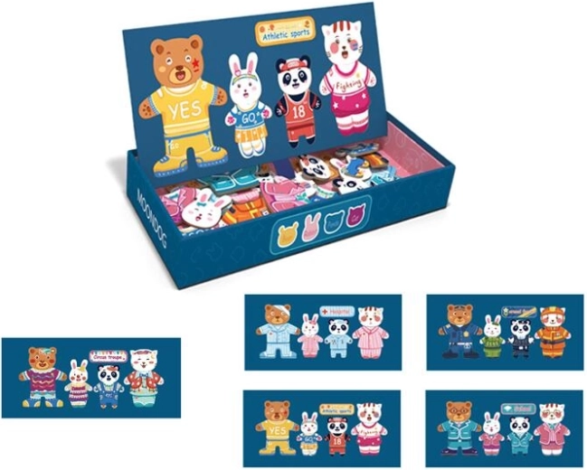 Ovaj magnetski set donosi zabavno odijevanje i kombiniranje odjeće za preslatku obitelj medvjedića. Zahvaljujući čvrstim magnetskim dijelovima djeca se lako snalaze s izmjenom dijelova odjeće i mogu isprobavati beskrajne kombinacije. Igra razvija kreativnost, koordinaciju oko–ruka i logičko razmišljanje.