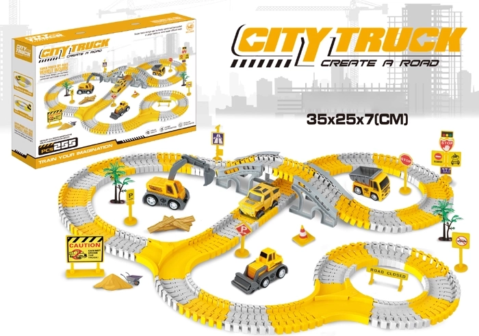 Stvorite dinamičnu stazu s radnim vozilima i pustite mašti na volju. Set sadrži 255 elemenata koje je moguće slobodno slagati u različite oblike. Segmenti staze lako se spajaju, pa djeca i roditelji mogu brzo graditi i prepravljati. Realistični građevinski autići igri daju dodatnu dozu autentičnosti.