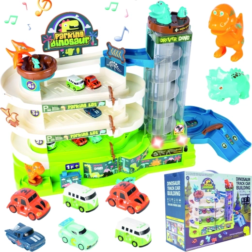 Uđite u avanturistički prapovijesni svijet s parkiralištem nadahnutim dinosaurusima. Zahvaljujući trima razinama i razigranom dizajnu djeca će uživati u dugim satima zabave, dok zvučni efekti pojačavaju realističan doživljaj igre. Set je odličan za dječju sobu i lako se sastavlja.