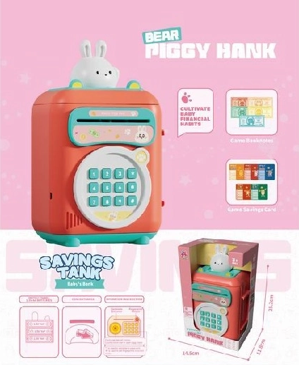 Pružite djeci zabavan način štednje novca. Ova kasica u stilu sefa s motivom slatke zečice izrađena je od visokokvalitetne plastike, pa je lagana, izdržljiva i sigurna za svakodnevnu upotrebu. Zahvaljujući kompaktnim dimenzijama stane na policu ili radni stol i postaje vesela dekoracija dječje sobe.