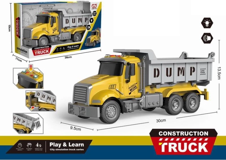 Ovaj detaljno izrađen kamion kiper razveselit će sve male vozače. Zahvaljujući frikcijskom pogonu dovoljno je gurnuti vozilo i ono nastavlja vožnju. Integrirani svjetlosni i zvučni efekti daju igri dozu realističnosti i potiču dječju maštu.