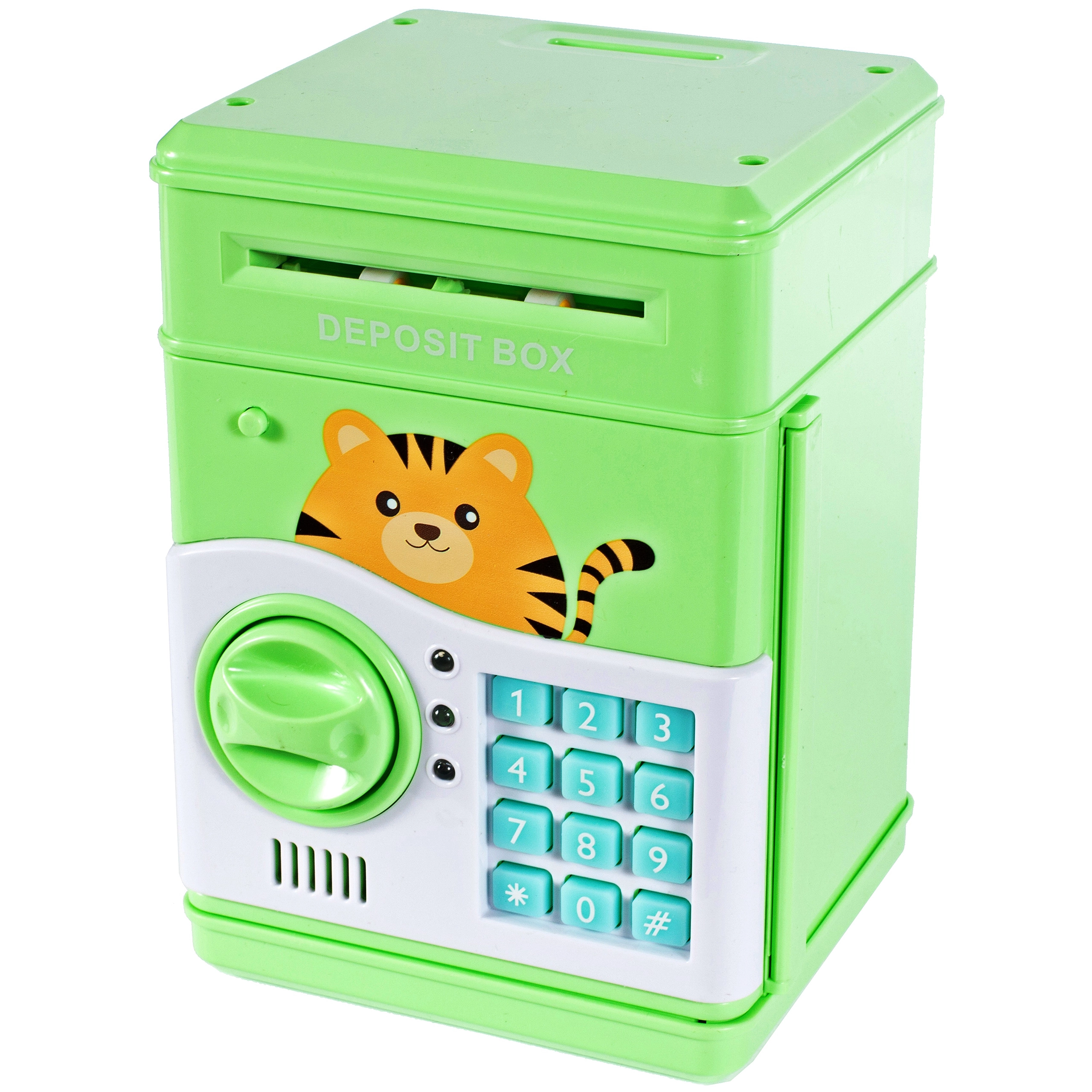 Slatka kasica u obliku sefa s motivom mačkice u zelenoj boji razveselit će djecu i odrasle. Kada prislonite novčanicu, ona se automatski uvlači, a sef reproducira jednu od 7 melodija. Idealno za zabavno štedjenje i učenje djece financijskoj pismenosti.