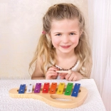 Dječji metalofon Bino u lučnom izvedbenom obliku kombinira izdržljive metalne lamele s čvrstom drvenom bazom. Dizajniran je tako da djecu prirodno vodi u otkrivanje ritma i melodije, potiče finu motoriku i koncentraciju. Sjajan izbor za prvo upoznavanje s glazbom kod kuće i u vrtiću.