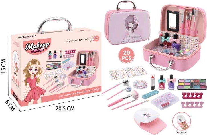 Ovaj kozmetički set u elegantnom koferčiću idealan je za početnike i strastvene kreatore make-upa. Zatvoren koferčić je kompaktan i sigurno štiti sadržaj, a nakon otvaranja nudi preglednu organizaciju za lak odabir šminke. Zahvaljujući udobnoj ručki koferčić se ugodno nosi te je prikladan za putovanja, u školu i u posjete.