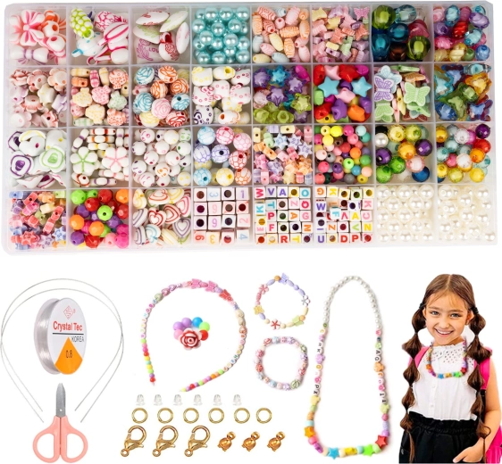 Ovaj kreativni set perlica savršen je izbor za male dizajnere nakita. Zahvaljujući širokoj paleti oblika i boja, djeca mogu stvarati originalne narukvice, ogrlice ili privjeske točno prema svojoj mašti. Prozirna nit olakšava nizanje, a gotovi komadi nakita izgledaju čisto i elegantno.