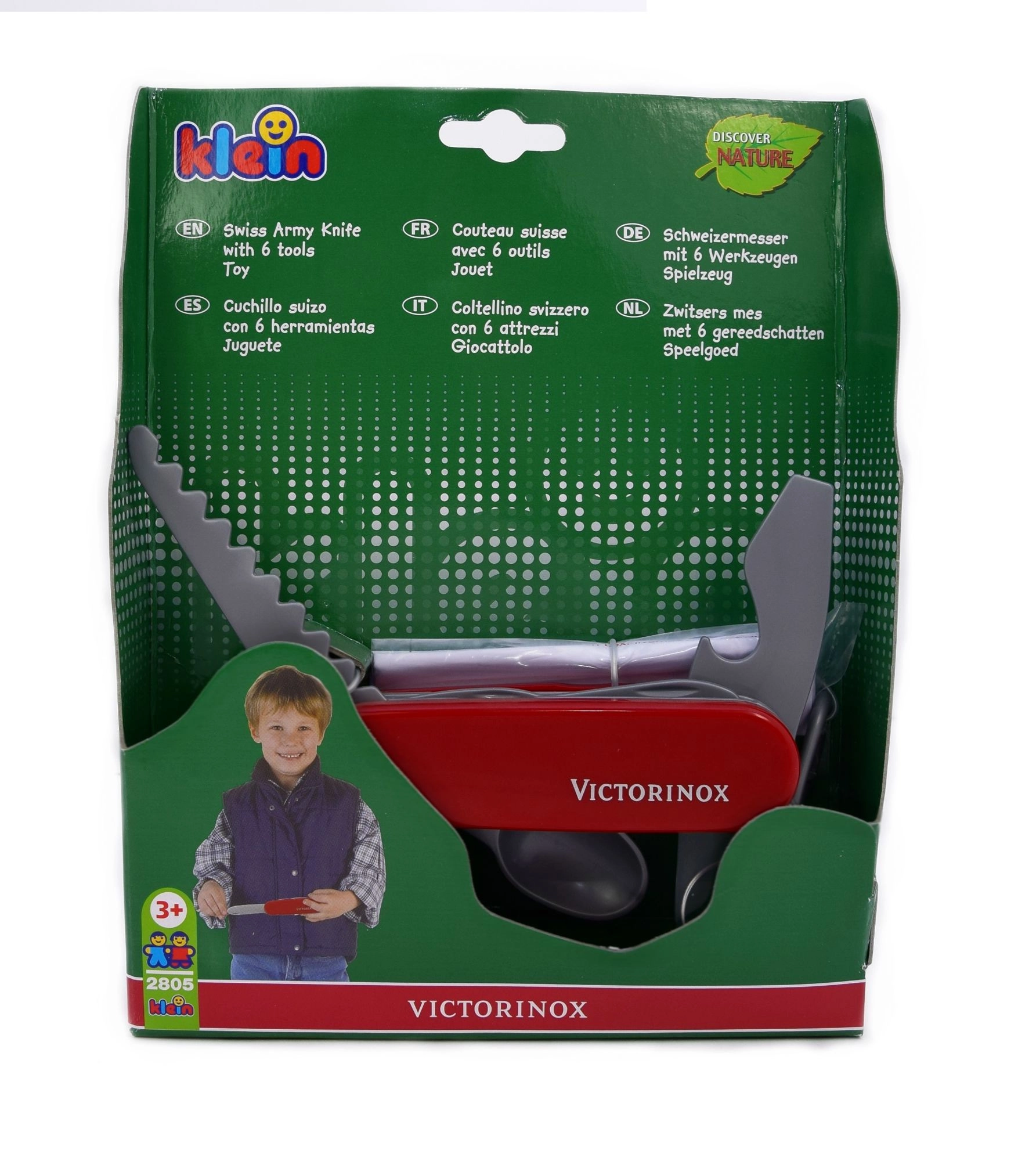Dječji džepni nož VICTORINOX od KLEIN je vjerna, ali u potpunosti sigurna imitacija legendarnog švicarskog noža. Zahvaljujući preciznoj izradi, crvenoj dršci s logom i praktičnom karabineru mali ga avanturisti mogu pričvrstiti primjerice na pojas i imati ga uvijek pri ruci.