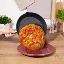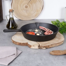 Robusna lijevanoželjezna tava promjera 25 cm idealna je za pripremu mesa, povrća, krumpira i peciva. Masivno tijelo od lijevanog željeza brzo i ravnomjerno se zagrijava te održava stabilnu temperaturu, pa jela dulje ostaju topla i daju savršene rezultate pri pečenju na jakoj vatri, prženju i pečenju u pećnici.
