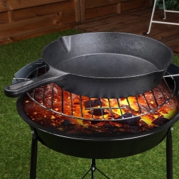 Zahvaljujući kompatibilnosti sa svim vrstama ploča za kuhanje – plinska, električna, staklokeramička, halogena i indukcijska – te mogućnosti upotrebe u pećnici ili izravno na vatri, tava je izvrstan izbor za kuhinju i za van. Dva integrirana izljeva omogućuju praktično prelijevanje umaka i masnoće bez nereda.