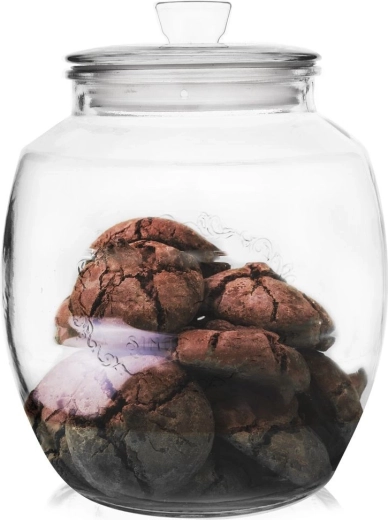 Praktična staklena posuda zapremine 2,2 l s brtvenim poklopcem idealna je za čuvanje suhih namirnica kao što su keksi, tjestenina, kava ili začinsko bilje. Prozirno, debelostjeno staklo omogućuje brzu kontrolu sadržaja, a zrakonepropusna silikonska brtva dulje održava svježinu i aromu. Elegantni reljef „HOME FANTASY” daje kuhinji stil.