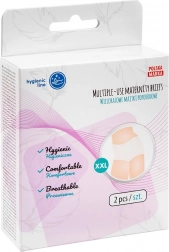 Praktične poslijeporoćne gaćice za višekratnu upotrebu u bijeloj boji pružaju higijensku zaštitu i maksimalnu prozračnost. Zahvaljujući nježnoj gumi u struku i na nogavicama odlično stoje, a istovremeno su udobne i blage prema osjetljivoj koži. Veličina XXL, obujam bokova cca 125 cm, pakiranje sadrži 2 komada.