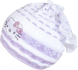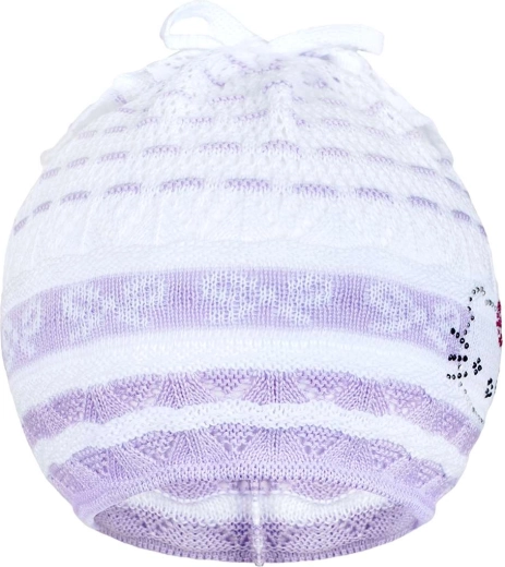 Preslatka proljetna pletena kapica-šal s motivom mačkice i sjajnim kamenčićima razveselit će svaku malu damu. Izrađena je od 100% pamuka, ugodno elastična i udobna, s univerzalnim opsegom oko 40–50 cm.