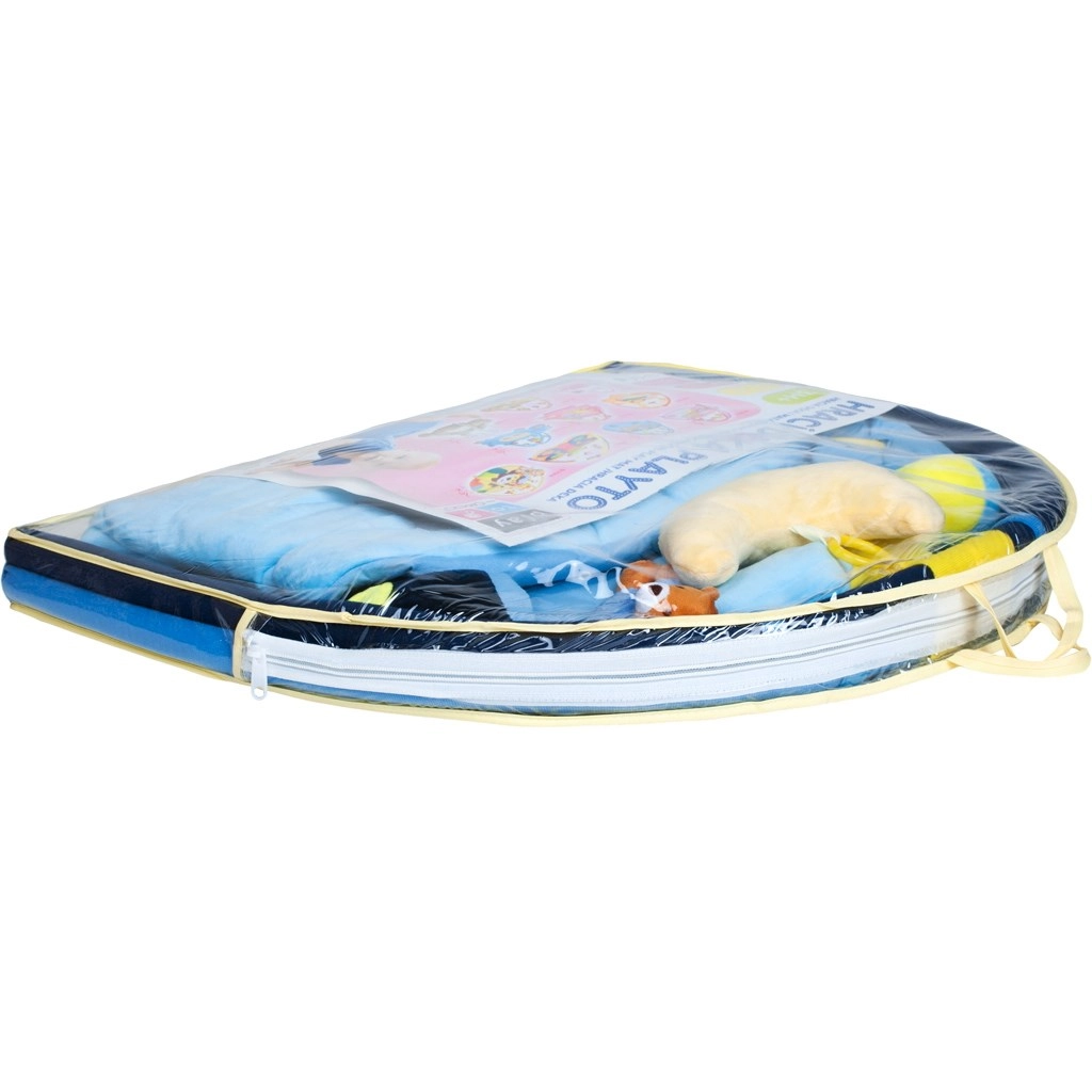 Igrana podloga PlayTo medvjedić koji spava u plavoj boji idealna je za svakodnevnu igru i odmor. Zahvaljujući mekom materijalu ugodna je na dodir, pruža potporu pri ležanju na trbuhu i leđima te potiče prirodan motorički razvoj. U integriranom mjesečiću skriven je glazbeni modul koji se pritiskom aktivira i reproducira melodije, stimulirajući sluh.