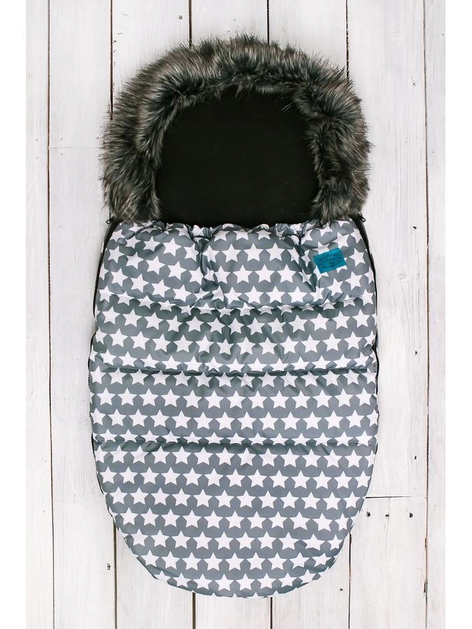 Zahvaljujući univerzalnim otvorima za 5-točkaste sigurnosne pojaseve vreća odlično pristaje većini kolica i autosjedalica. Praktični stražnji džep osigurava čvršće pričvršćivanje kako vreća ne bi klizila. Moderan dizajn sa zvjezdicama i pažljiva izrada naglašavaju premium izgled.