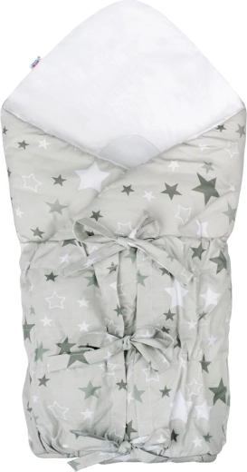 Ova klasična vezana povojića NEW BABY vraća se u modernom izdanju sa sivim zvjezdicama. Prirodno oponaša okruženje maminog trbuha, čime potiče lakše usnivanje i dulji, neprekinut san. Tri reda vrpci omogućuju jednostavno i sigurno vezanje prema potrebi i veličini bebe.
