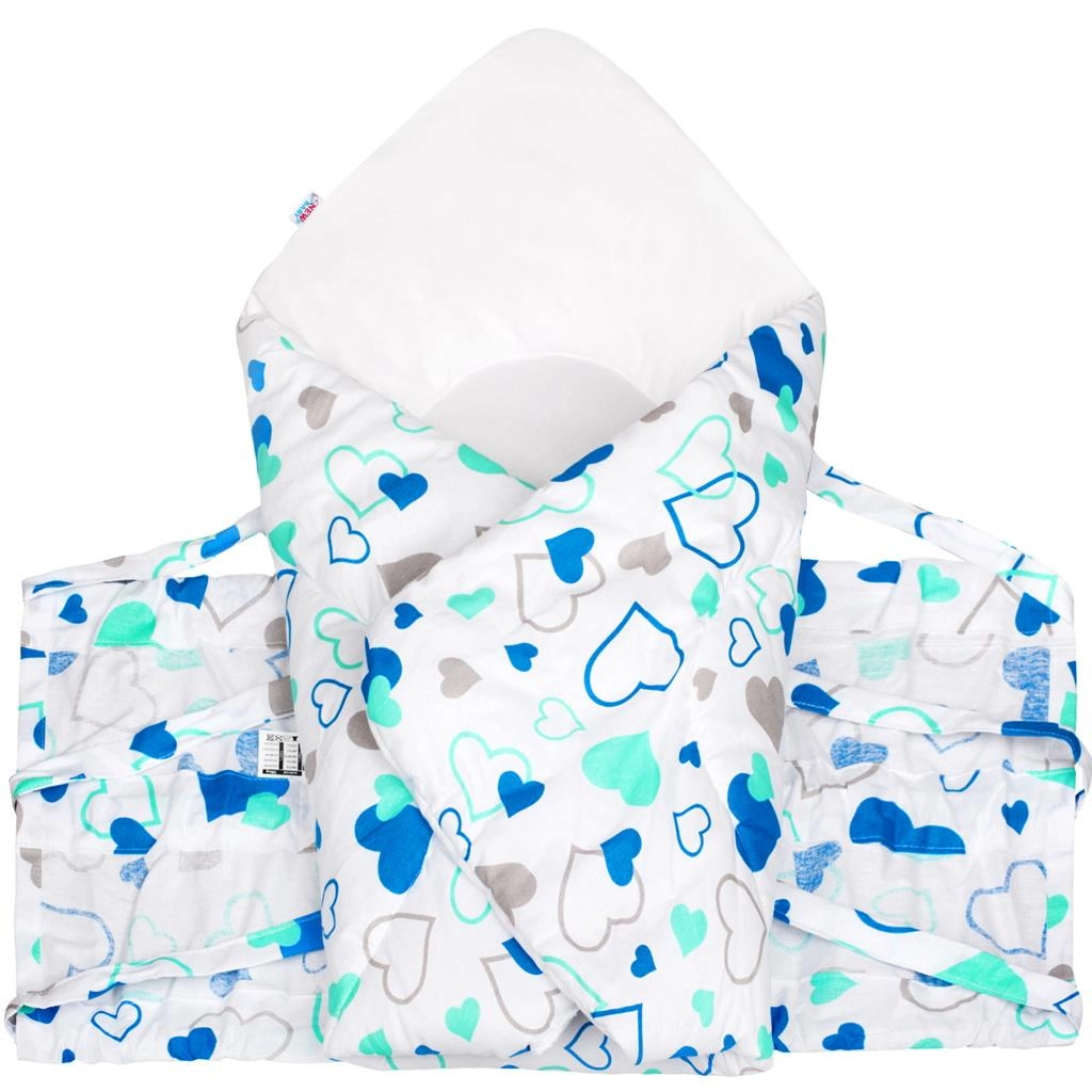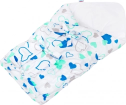 Povijalica New Baby s plavim srcima izvrstan je izbor za prve tjedne bebina života. Zahvaljujući mekom podstavljanju i kapuljači pruža ugodnu toplinu i potiče osjećaj sigurnosti. Praktično vezanje u tri reda omogućuje prilagodbu povijanja potrebama djeteta.