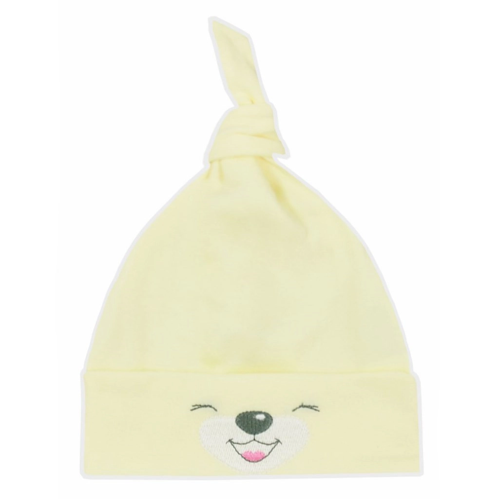 Slatka pamučna kapica za bebe s čvorom i širokim rubom za maksimalnu udobnost. Izrađena od meke 100% pamuka, koji je nježan prema osjetljivoj koži i odlično pristaje zahvaljujući neudobnom, netisnom rubu. Vesele printeve sa nasmijanim licima daju bebinoj odjeći razigran stil.