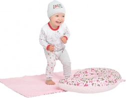 Dojiljski jastuk New Baby osmišljen je za udoban položaj bebe i mame tijekom dojenja, odmora i igre. Jedna strana je od mekane Minky tkanine s 3D izbočinama koje nježno stimuliraju senzomotoriku djeteta i pružaju ugodan, topao dodir. Druga strana je od 100% pamuka s nježnim uzorcima koji potiču percepciju i maštu.