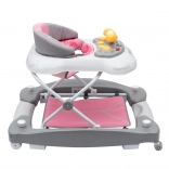 Multimedijska hodalica BABY MIX u ružičastoj boji spaja učenje hodanja i razigranu stimulaciju u jednom. Funkcija 2-u-1 – hodalica i ljuljačka omogućuje lako prebacivanje prema potrebi. Ergonomski oblikovano sjedalo podupire pravilno držanje tijela, dok prednji okretni silikonski kotačići 360° osiguravaju glatko i tiho kretanje bez oštećenja podova.