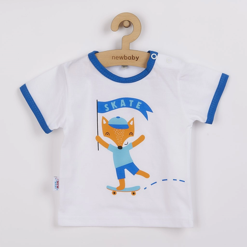 Presladak 2-dijelni dječji komplet New Baby Lisica od mekane 100% pamuke uključuje majicu s kratkim rukavima i udobne kratke hlače. Majicu krasi veseli motiv lisice s natpisom SKATE te ima praktično kopčanje na ramenu za lakše oblačenje. Kratke hlače imaju elastičan struk i idealne su za svakodnevno nošenje.
