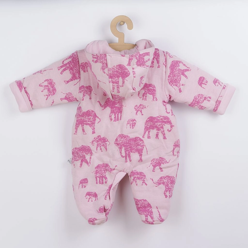 Ovaj topli dječji kombinezon idealan je za hladnije dane. Ugodan materijal s pamučnom podstavom osigurava nježan kontakt s dječjom kožom, dok antialergijsko punjenje pruža pouzdanu toplinu bez iritacija. Slatki print slonova i ružičasta izvedba razveselit će sve ljubitelje nježnog dizajna.