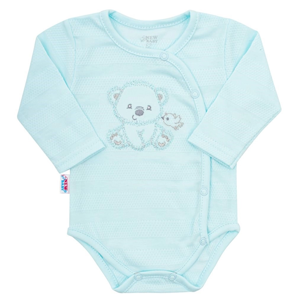 Kompletni bebini set NEW BABY Sweet Bear donosi udobnost, nježnost i usklađen dizajn za prve dane života. Mekani 100% pamuk je prozračan i ugodan na dodir, pa je idealan za novorođenčad. Cijeli je set usklađen u nježnoj plavoj boji s atraktivnom strukturom tkanine i finim vezom medvjedića i ptičice.