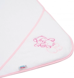 Mekani dječji ručnik s kapuljačom NEW BABY dimenzija 100 × 100 cm izrađen je od kvalitetnog, vrlo upijajućeg frotira. Odlično grije nakon kupanja, brzo se suši, a kapuljača štiti glavicu od hladnoće. Vesela vezena aplikacija slonića razveselit će svaku bebu i roditelje.