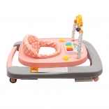 Praktična dječja hodalica NEW BABY Forest Kingdom Pink pomaže pri prvim koracima i potiče osjete zahvaljujući šarenom, izvadivom klaviriću i luku s veselim igračkama. Nudi glatko podešavanje visine, tihe silikonske kotačiće za lako upravljanje i sigurnosne gumene podloške. Udobna presvlaka je periva i ojačana za bolju potporu leđa.