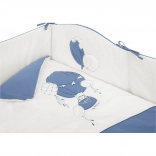 - Kompletan 3-dijelni set: navlaka za poplun 90 × 120 cm, jastučnica 40 × 60 cm, ogradica cca 180 cm
