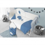Umirujuća plavo-bijela paleta i nježni motivi stvaraju ugodno okruženje za bebu.