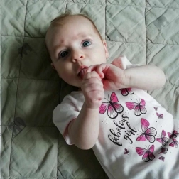 Komplet New Baby Butterflies dizajniran je tako da spoji nježan izgled s maksimalnom udobnošću za bebu. Majicu s kratkim, naboranim rukavima krasi razigrani print leptira, a zahvaljujući kopčanju na drukere na ramenu lako se oblači preko glavice. Suknjica u sivom meliru ima šarmantni volančić koji outfitu daje dozu stila te širi, elastični struk za cjelodnevnu udobnost.