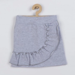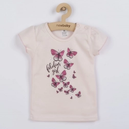 Preslatki 2-dijelni komplet za djevojčice brenda New Baby donosi udobnost i stil za svaki dan. Sadrži kratku majicu s naboranim rukavima i printom leptira te sivu meliranu suknjicu s volančićem. Mehka 100% pamučna majica, ugodna elastična suknjica i praktično kopčanje na drukere na ramenu olakšavaju odijevanje i osiguravaju udobnost bebice. Šira guma u struku ne pritišće trbuščić.