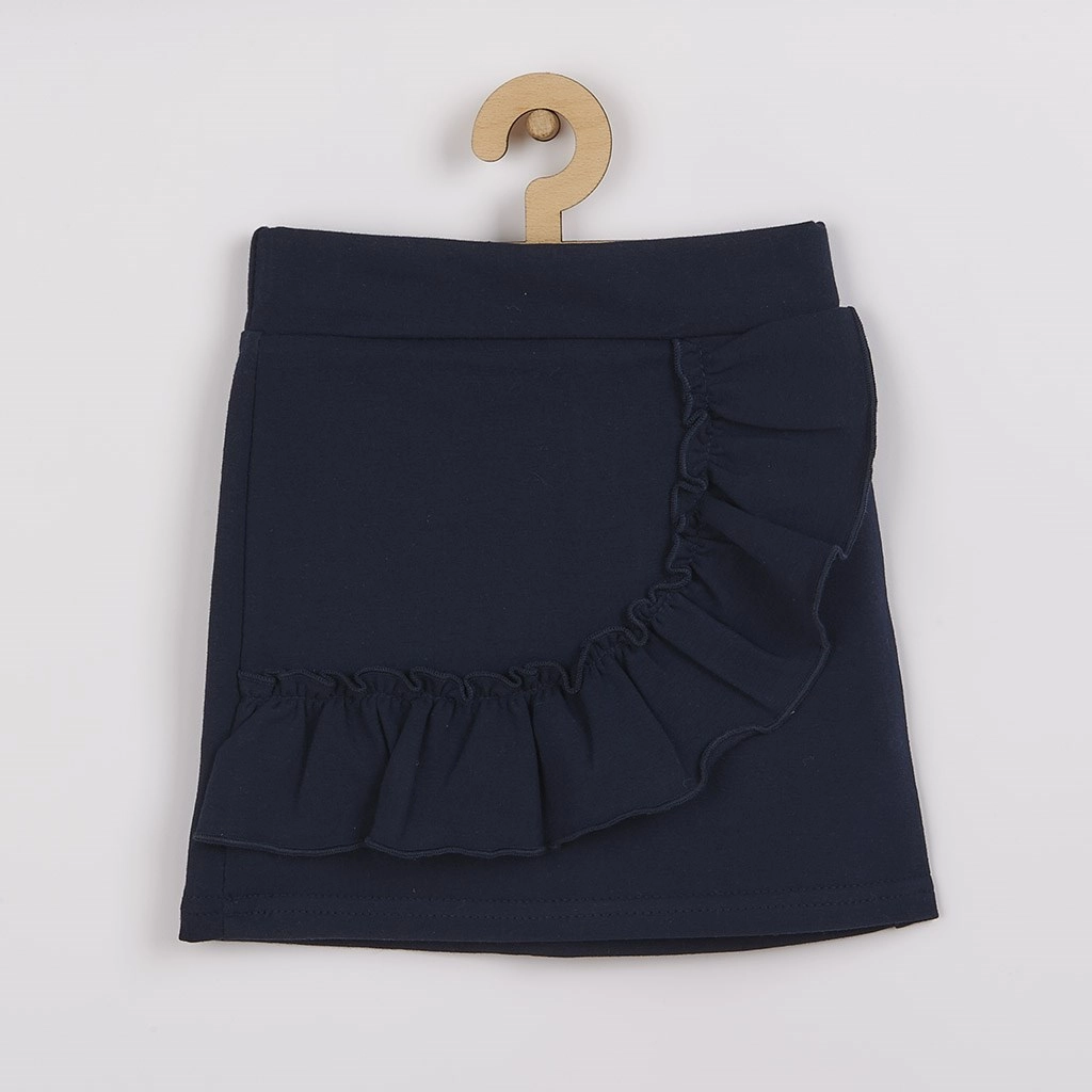 Slatki 2-dijelni kompletić za djevojčice NEW BABY Butterflies spaja udobnost i stil. Sadrži mekanu pamučnu majicu s kratkim naboranim rukavima i tamnoplavom suknjicom s volanom. Praktični drukeri na ramenu olakšavaju oblačenje, dok šira guma u struku ne pritišće bebino trbuščić. Odlično za svaki dan i svečanije prigode.
