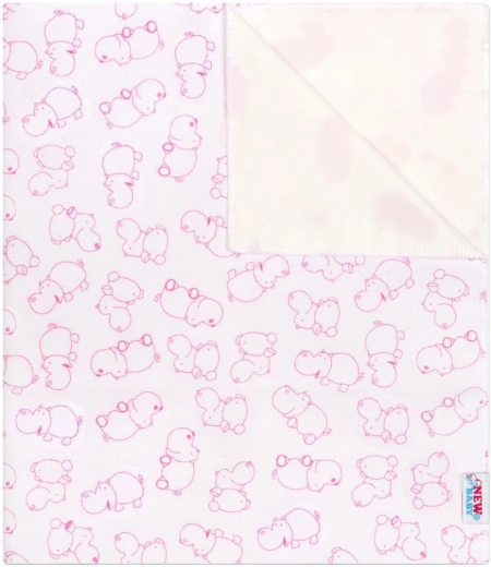Flanelska podloga New Baby spaja prirodnu udobnost 100% pamuka s praktičnom zaštitom od vlage. Donji sloj od vodonepropusne folije sprječava curenje, pa je odlična za presvlačenje kod kuće i na putu. Veseli motiv nilskog konjića u bijelo‑ružičastoj varijanti razveselit će i roditelje i bebu.