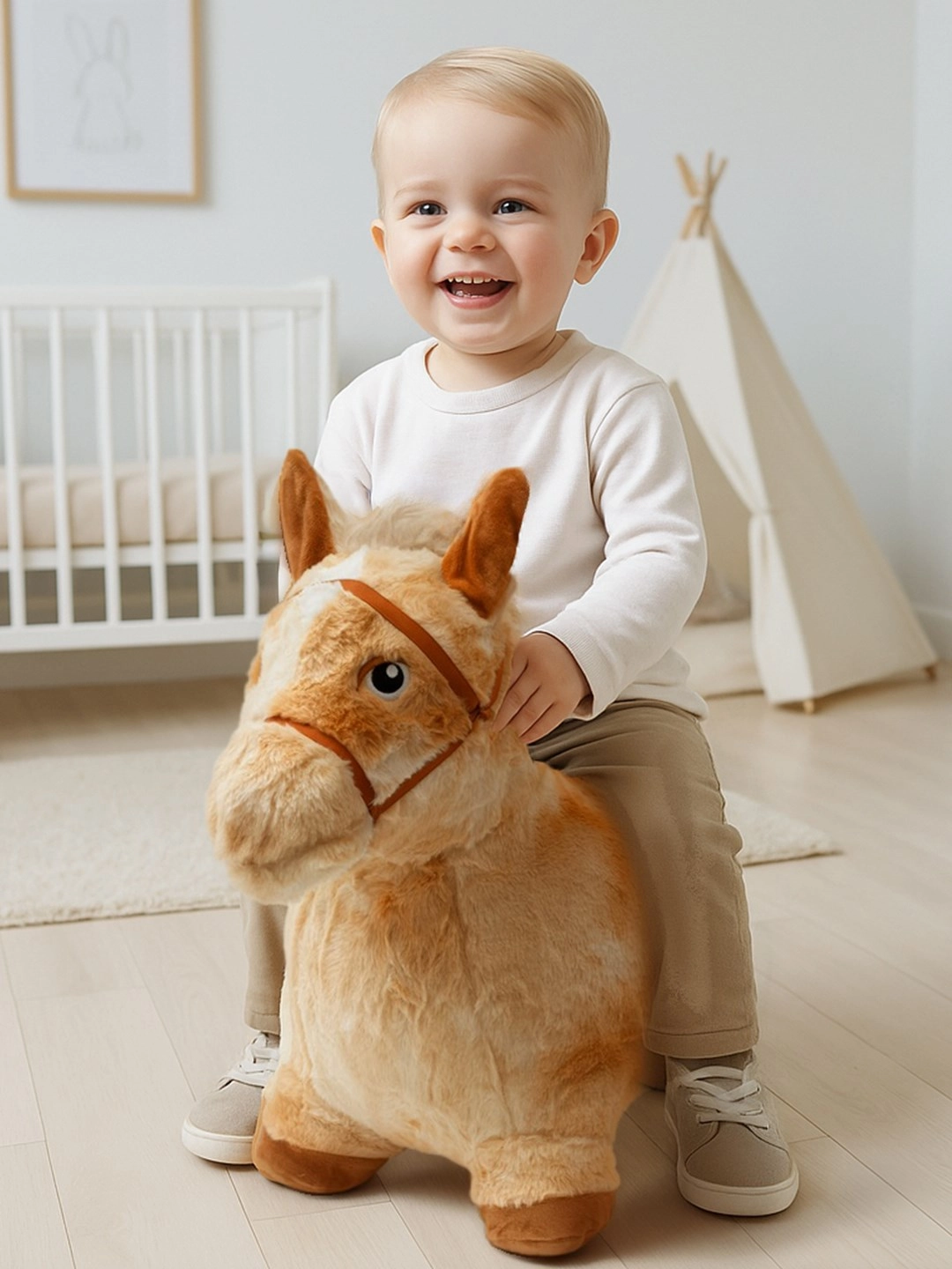 Plišani skakajući konjić PlayTo idealno je hopsalo za djecu koja vole kretanje i životinje. Mekan, na dodir ugodan pliš ne kliže i osigurava udobno sjedenje te siguran hvat za uši. Ugrađeni zvučni modul između ušiju pri pritisku reproducira realističan zvuk konjića, koji pojačava igru i razvija maštu.