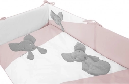 Sladak i praktičan 5-dijelni set posteljine za krevetić Belisima Mouse u ružičastoj boji nudi 100% pamuk za maksimalnu mekoću, hipoalergene materijale nježne prema koži i sigurne patentne zatvarače bez slobodnih krajeva. Set uključuje navlake, poplun, jastuk i zaštitni ogradni obrub za siguran i ugodan san bebe.