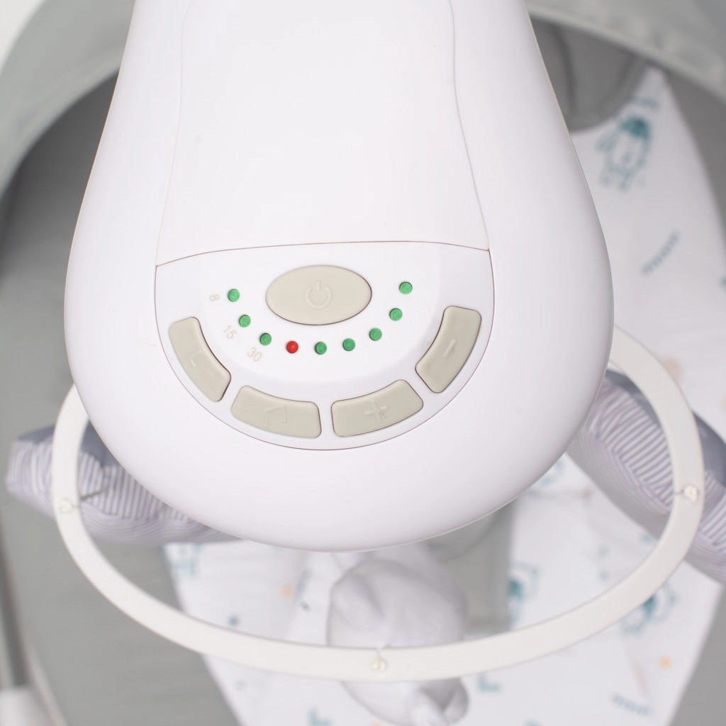 Odaberite među 4 brzine ljuljanja i postavite timer na 8, 15 ili 30 minuta – njihaljka će se potom sama isključiti.