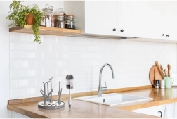 Integrirana prijanjaljka stabilno pričvršćuje četku na glatke površine, što olakšava sušenje i održava radnu plohu čistom.