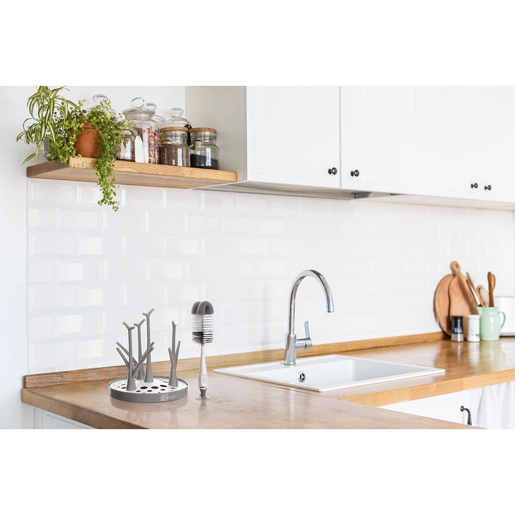 Velika četka s dlačicama i mekim spužvastim vrhom učinkovito uklanja ostatke mlijeka i nečistoće čak i s dna i iz kutova boca bez grebanja.
