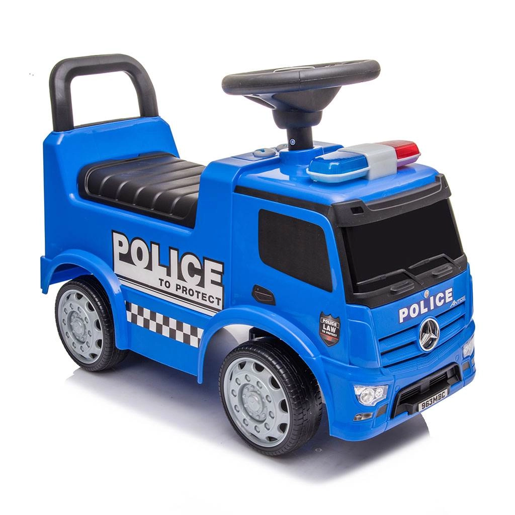 Autentični oblici karoserije, POLICE naljepnice i detalji farova čine guralo atraktivnom igračkom koja potiče djecu na aktivnu igru.