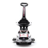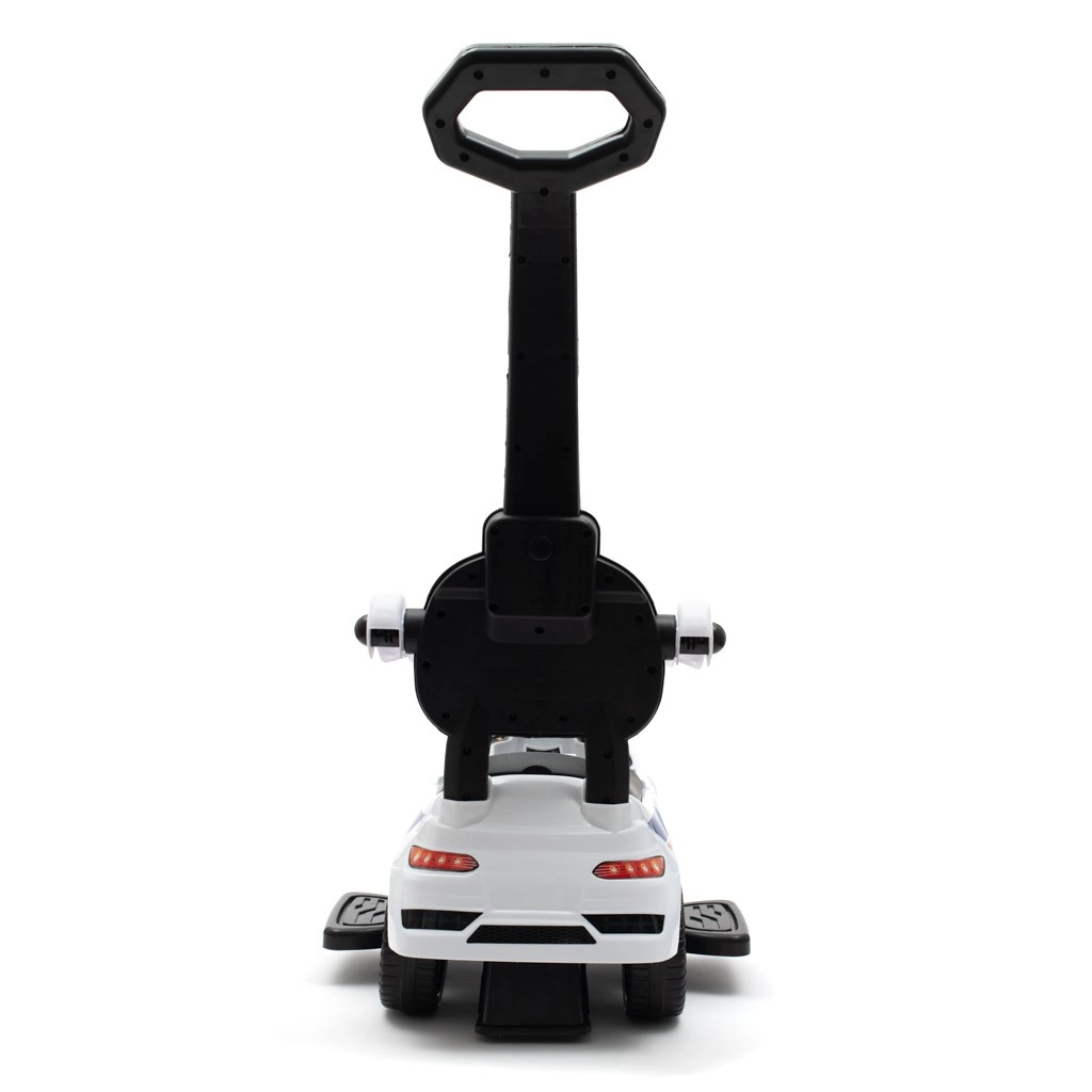 Roditelji će cijeniti praktičnu upravljačku šipku za kontrolu smjera, odvojive naslone za ruke i preklopiva podnožja za manju djecu. Kada mali vozač poraste, dijelove je lako ukloniti i koristiti autić kao klasično guralo. Ispod sjedala skriva se pretinac za odlaganje za male dragocjenosti.