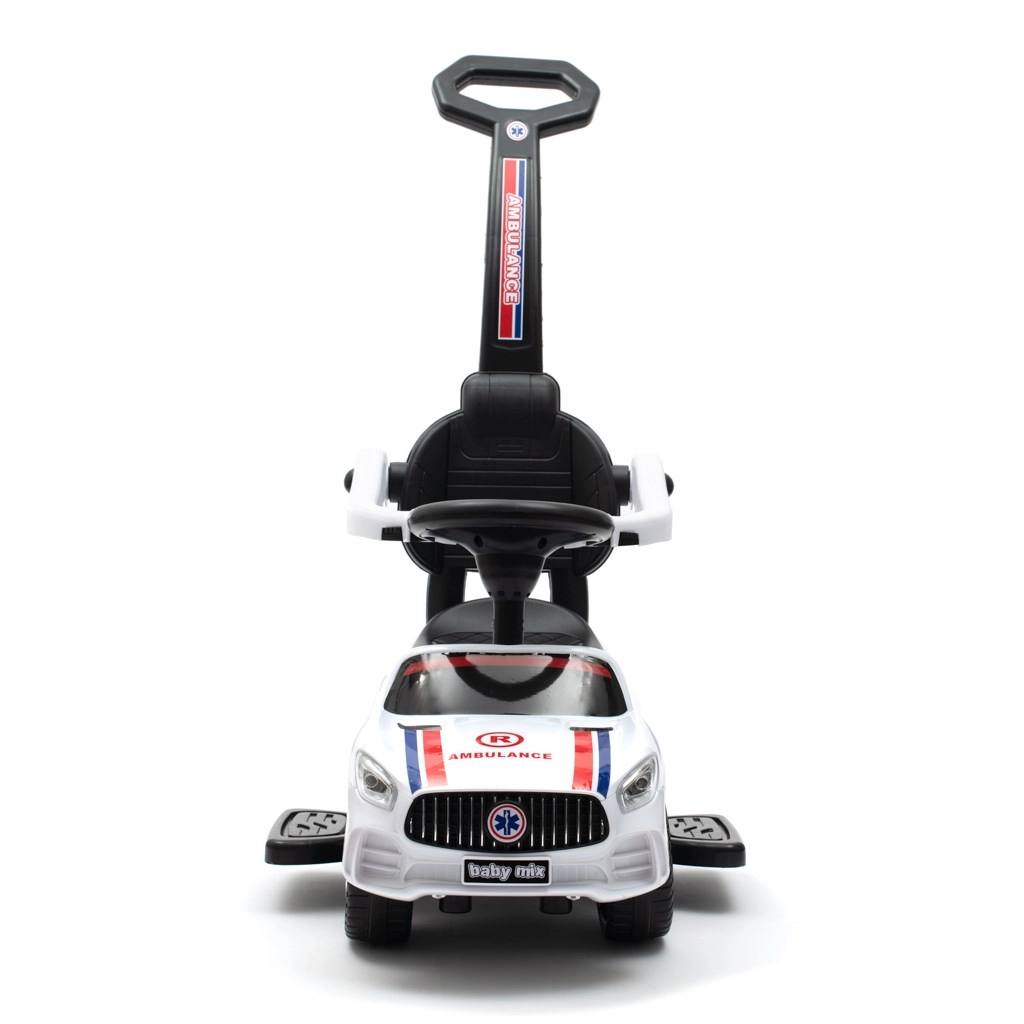 Otkrijte bijelo guralo Baby Mix u stilu vozila hitne pomoći koje oduševljava realističnim detaljima, udobnim profiliranim sjedalom i stabilnom konstrukcijom. Zakretni prednji kotači olakšavaju manevriranje, dok visoki naslon i sigurnosni elementi brinu za udobnost i sigurnost tijekom vožnje.