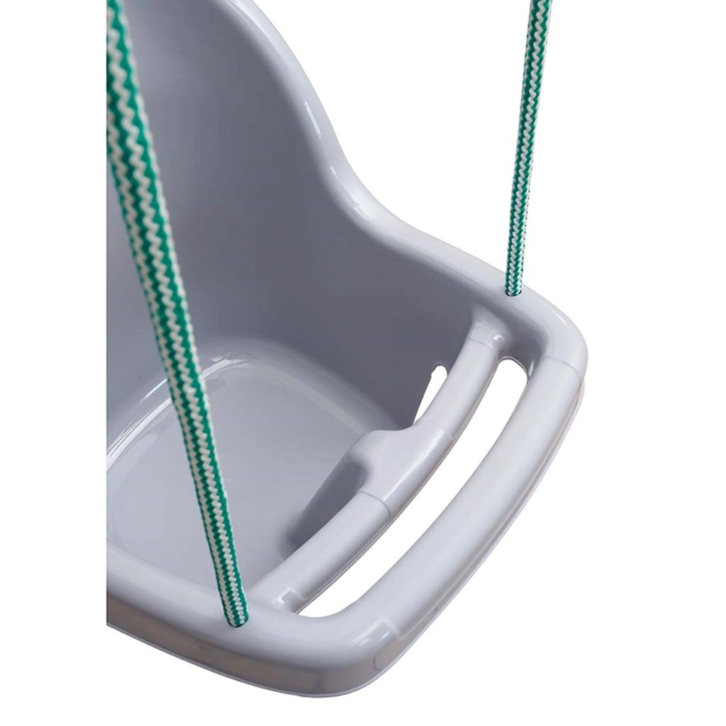 Ova siva viseća ljuljačka pruža djeci sigurno i udobno ljuljanje zahvaljujući visokom naslonu i prednjem sigurnosnom elementu. Konstrukcija od kvalitetne plastike otporna je na vremenske uvjete, lako se čisti i dugotrajno zadržava boju. Zahvaljujući duljinski podesivim užadima lako je prilagodite različitim visinama vješanja u interijeru i eksterijeru.