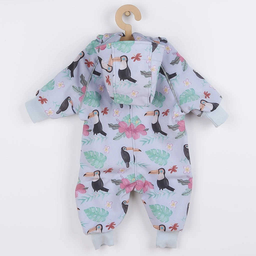 Stilizan i funkcionalan softshell kombinezon za bebe brenda New Baby s motivom tukana. Nudi vodootpornost, vjetrootpornost i prozračnost za udobnost pri svakodnevnom nošenju. Praktično kopčanje patentnim zatvaračem duž cijele duljine olakšava odijevanje, topla unutrašnjost od kratko šišanog flisa zadržava toplinu, a elastični rubovi osiguravaju izvrsno prianjanje. Reflektirajući detalji na rukavima povećavaju sigurnost u sumrak.