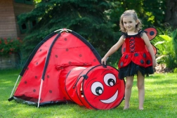 Ovaj crveni šator s crnim točkicama i priključivim tunelom oduševit će male istraživače. Lako se postavlja i sklapa, lagan je i prenosiv, pa je prikladan za dječju sobu, terasu i vrt. Izdržljiv poliester osigurava dug vijek trajanja i jednostavno održavanje.